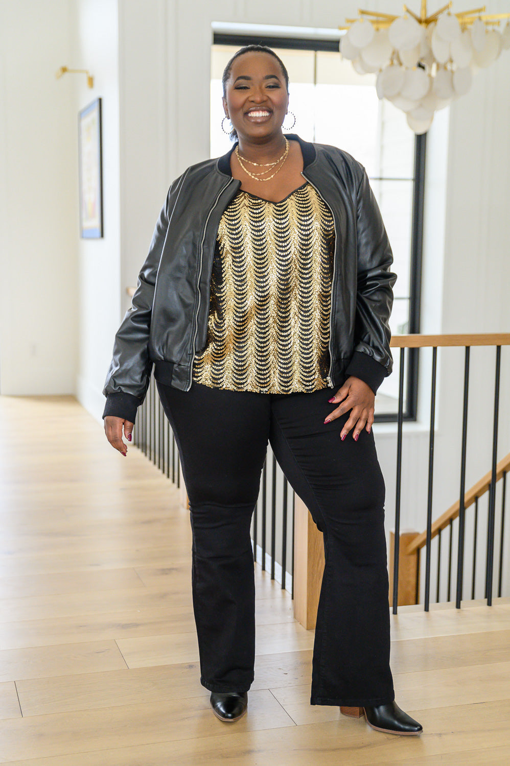 Stayin' Alive V-Neck Sequin Tank in Gold