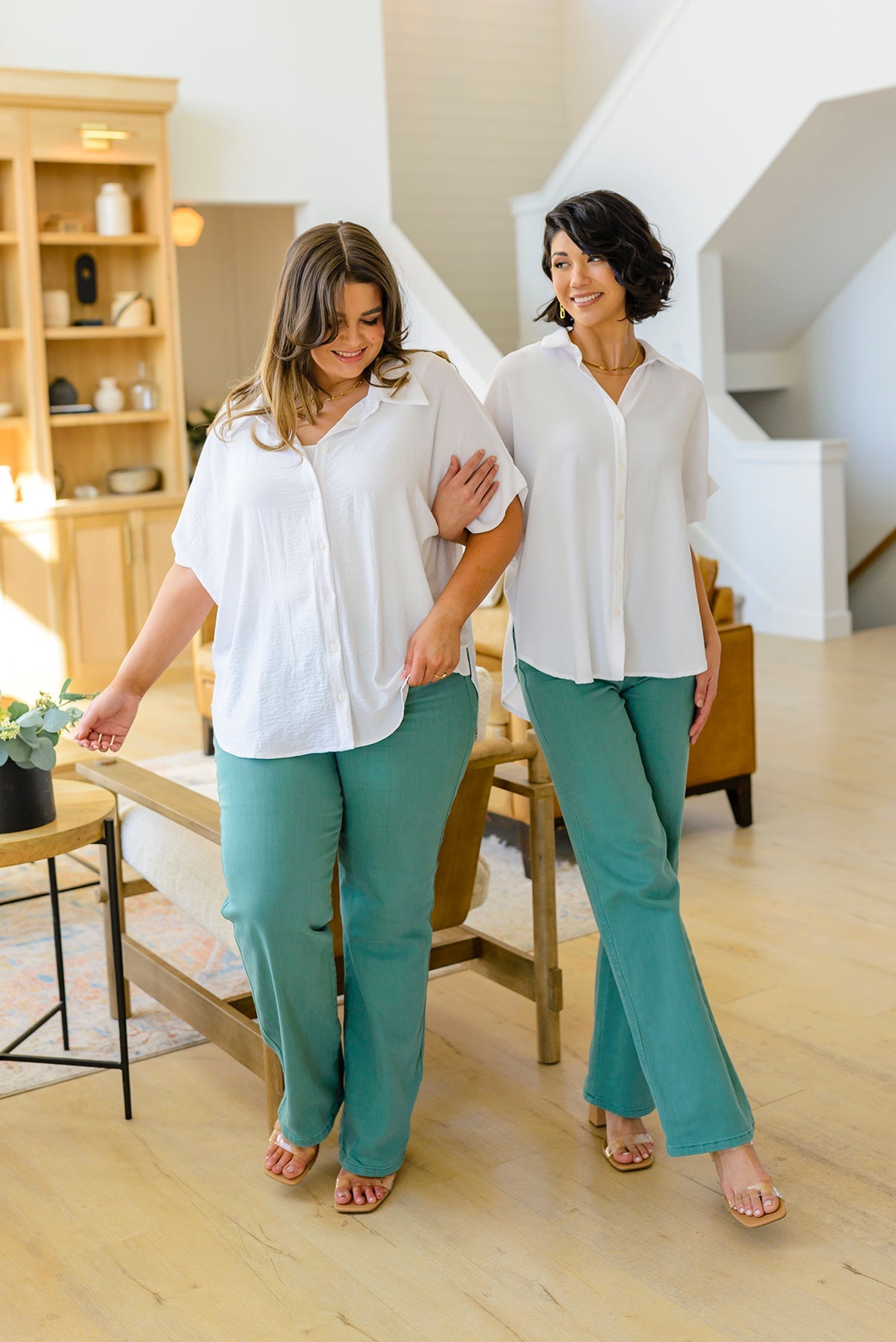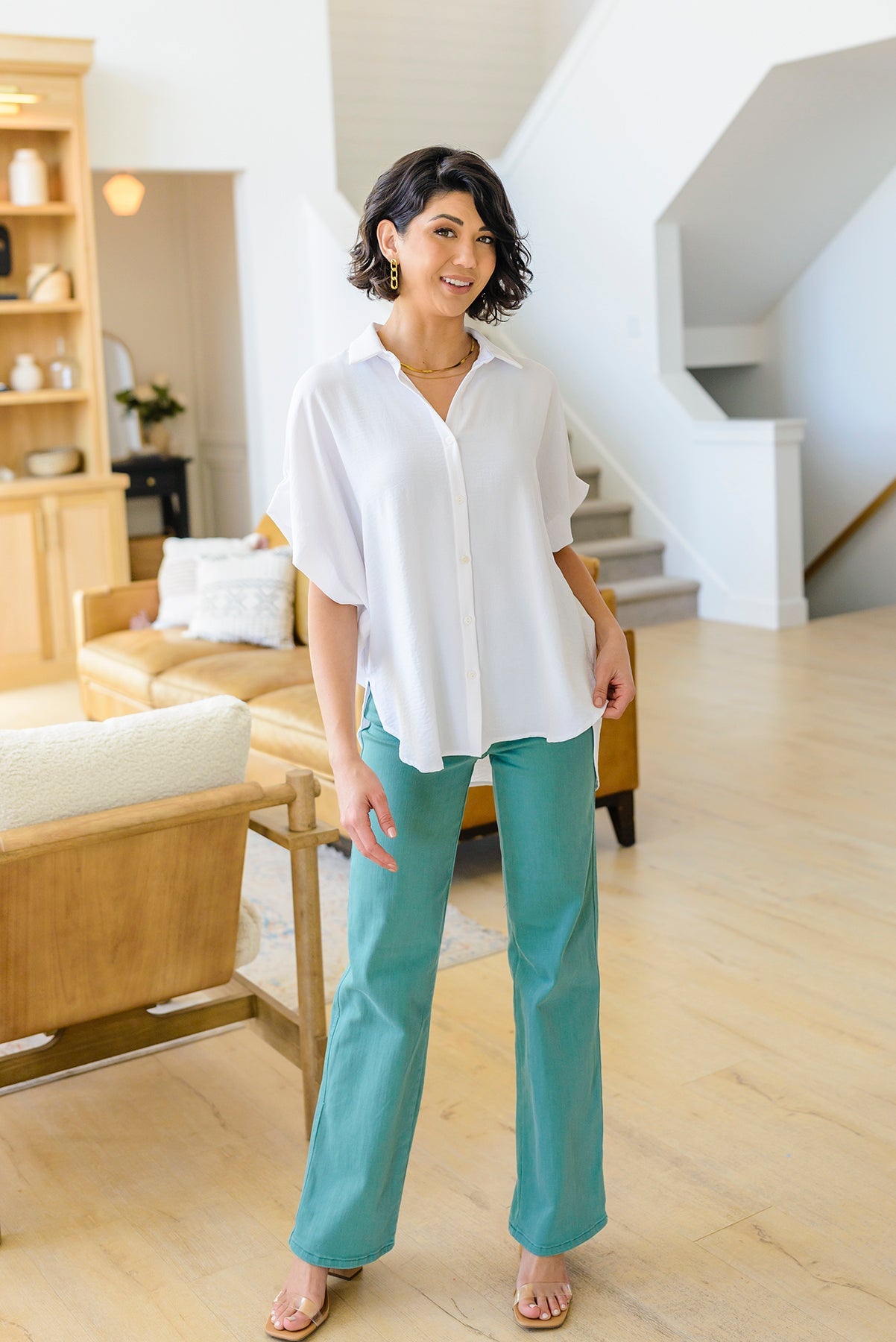 Our Sweet Simplicity Button Down Blouse is perfect for those who don't like to fuss over their look. It's textured woven fabric and breezy dolman sleeve are sure to keep you cool and looking timelessly stylish! Just throw it on, button it up and you're good to go - no muss, no fuss. Perfect for days when you want to look on-point but chill!
